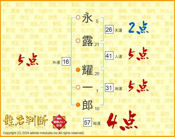 永露耀一郎さんの人運は41画の5点!