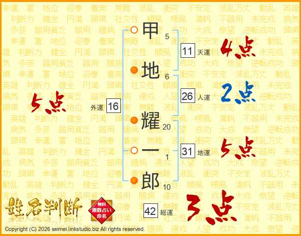 甲地耀一郎さんの地運は31画の5点!
