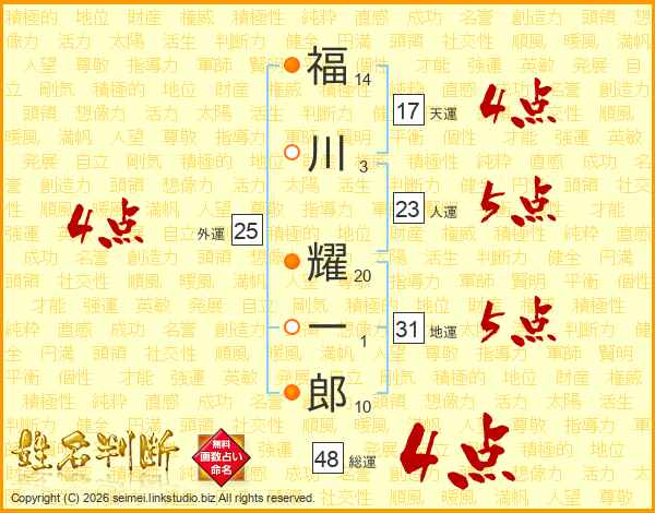 福川耀一郎さんの総運は48画の4点!
