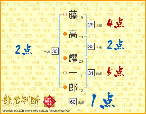 藤(19画)高(10画) 耀(20画)一(1画)郎(10画)