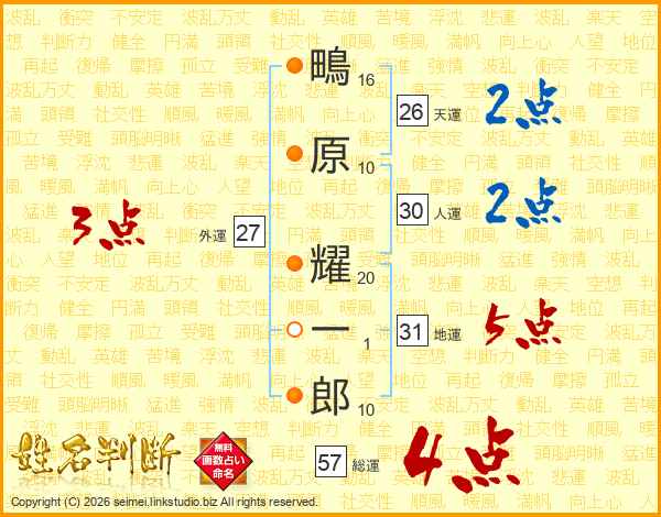 鴫(16画)原(10画) 耀(20画)一(1画)郎(10画)
