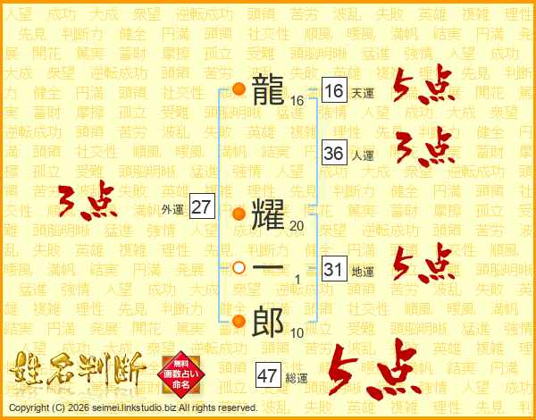 龍耀一郎さんの総運は47画の5点!