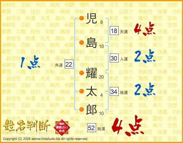 児島耀太郎さんの総運は52画の4点!