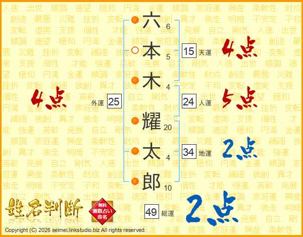 六(6画)本(5画)木(4画) 耀(20画)太(4画)郎(10画)