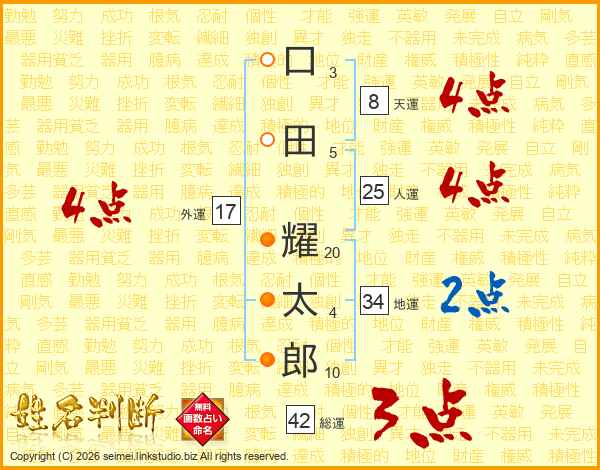 口田耀太郎さんの総運は42画の3点!