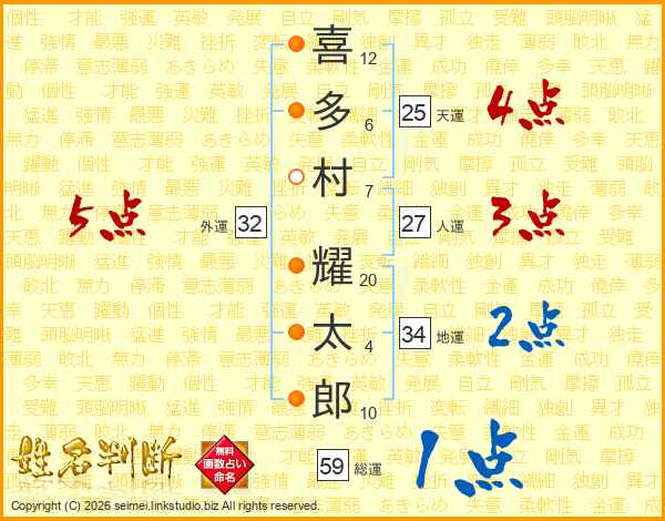 喜多村耀太郎さんの総運は59画の1点!