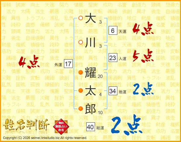 大川耀太郎さんの外運は17画の4点!