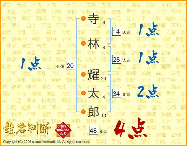 寺(6画)林(8画) 耀(20画)太(4画)郎(10画)
