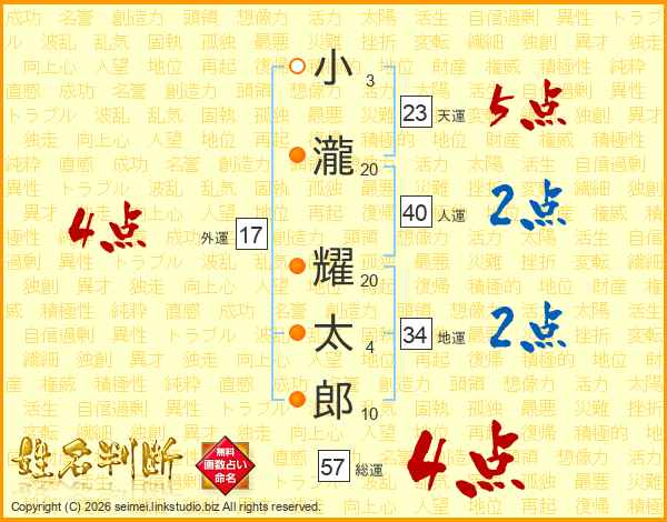 小瀧耀太郎さんの総運は57画の4点!