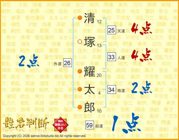 清塚耀太郎さんの人運は33画の4点!