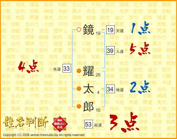 鏡耀太郎さんの外運は33画の4点!