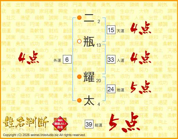 二瓶耀太さんの総運は39画の5点!