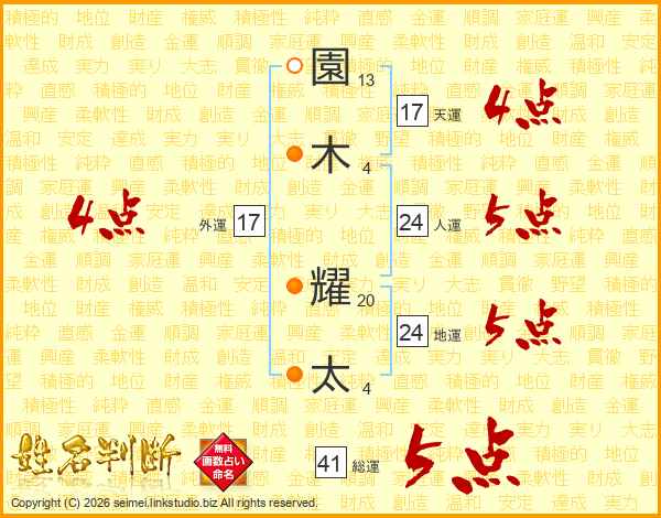園木耀太さんの総運は41画の5点!