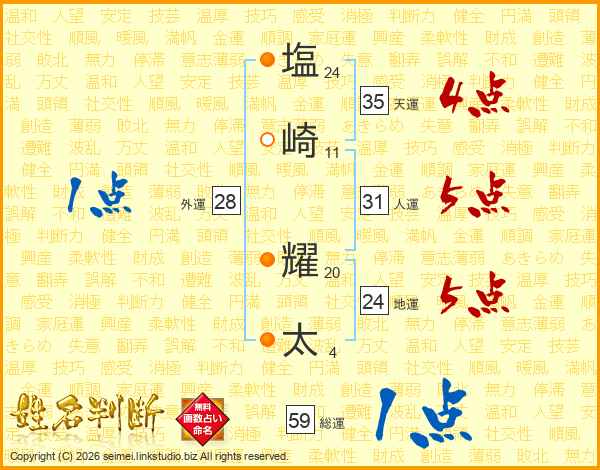 塩崎耀太さんの総運は59画の1点!