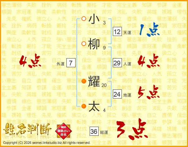 小柳耀太さんの外運は7画の4点!
