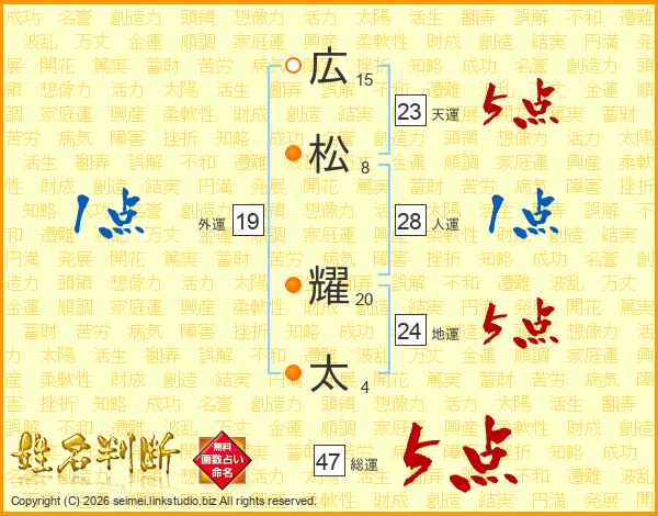 金運 順調 家庭運 興産 柔軟性 財成 創造