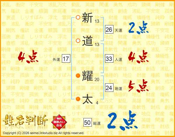新道耀太さんの人運は33画の4点!