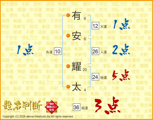 有安耀太さんの総運は36画の3点!