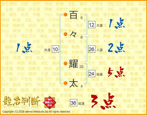 百(6画)々(6画) 耀(20画)太(4画)