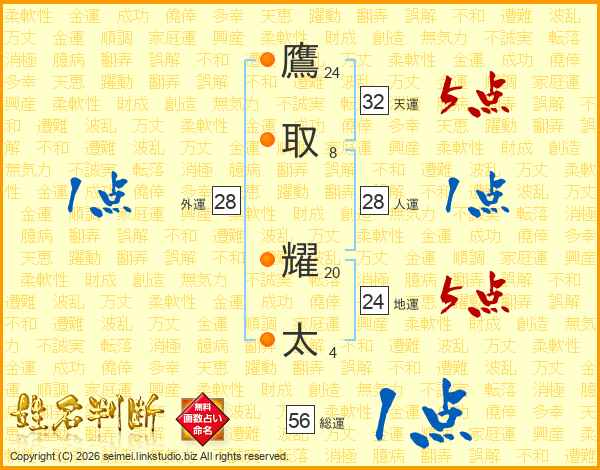 鷹取耀太さんの総運は56画の1点!