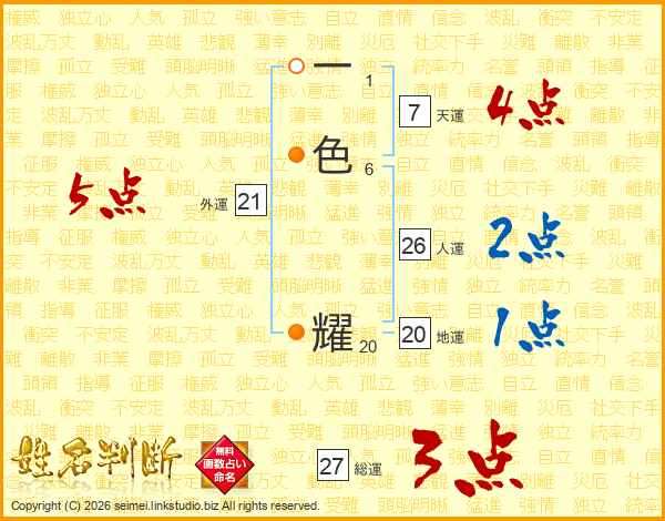 一色耀さんの外運は21画の5点!