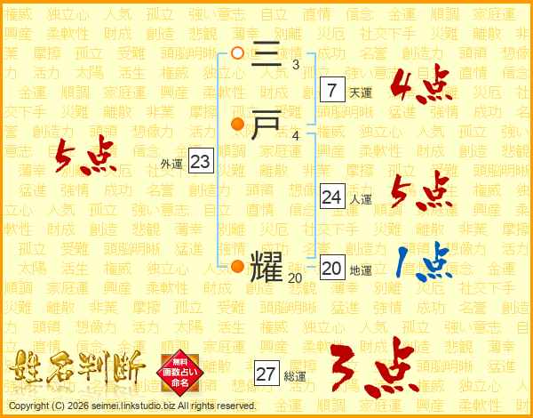 三戸耀さんの外運は23画の5点!