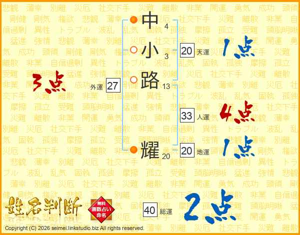 中小路耀さんの総運は40画の2点!