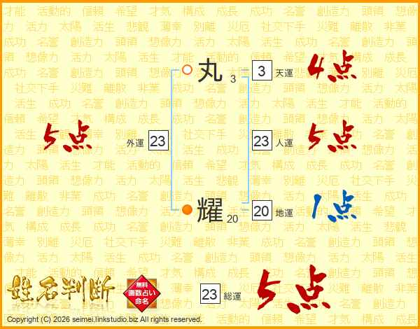丸耀さんの人運は23画の5点!