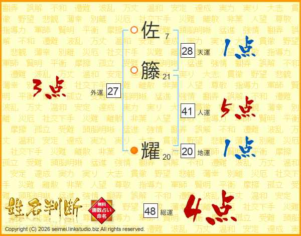 佐籐耀さんの総運は48画の4点!