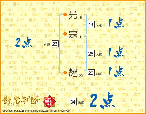 光宗耀さんの総運は34画の2点!