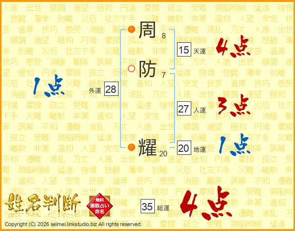 周防耀さんの総運は35画の4点!