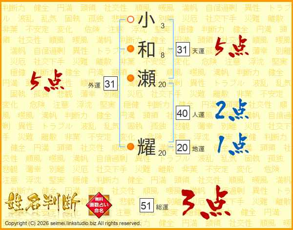 小和瀬耀さんの天運は31画の5点!