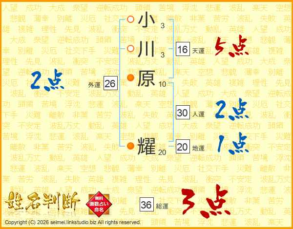 小川原耀さんの総運は36画の3点!