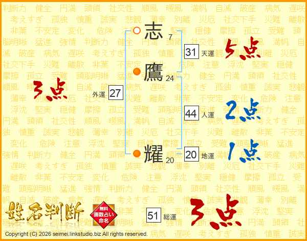 志鷹耀さんの総運は51画の3点!