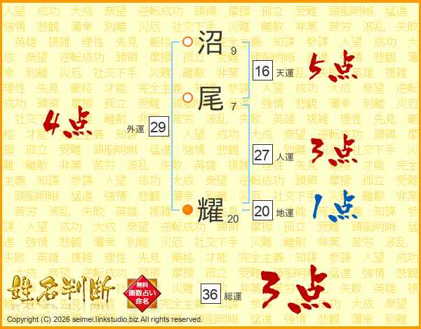 沼尾耀さんの人運は27画の3点!