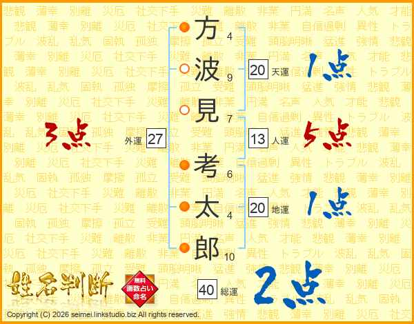 方波見考太郎さんの人運は13画の5点!