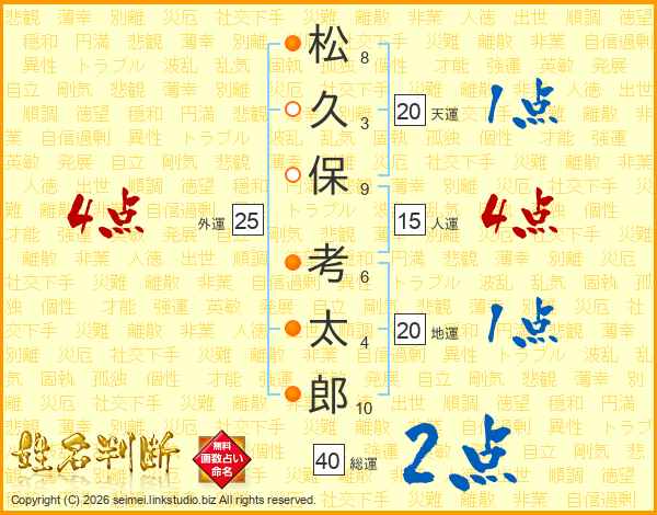 松(8画)久(3画)保(9画) 考(6画)太(4画)郎(10画)
