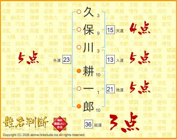 久保川耕一郎さんの人運は13画の5点!
