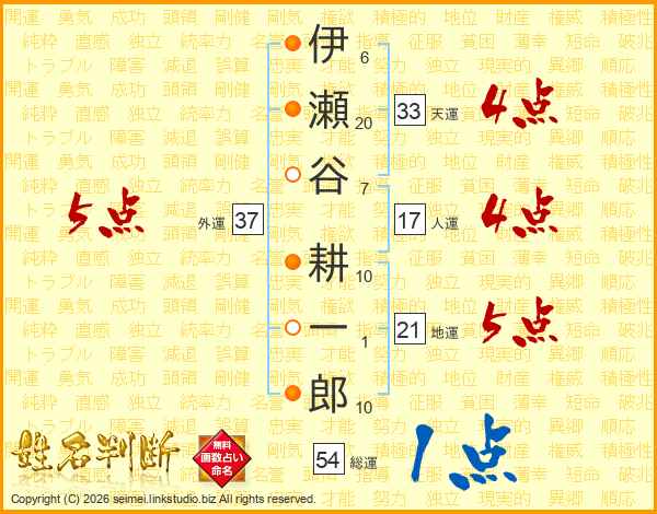 伊瀬谷耕一郎さんの外運は37画の5点!