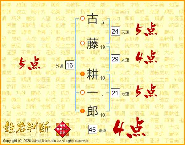 古藤耕一郎さんの総運は45画の4点!