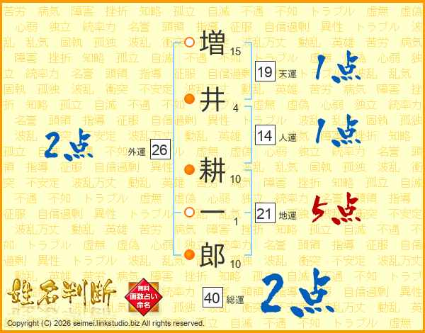 増(15画)井(4画) 耕(10画)一(1画)郎(10画)