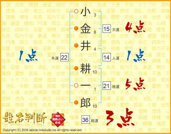 小金井耕一郎さんの総運は36画の3点!