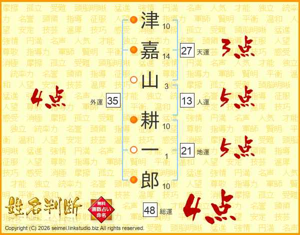 津嘉山耕一郎さんの総運は48画の4点!