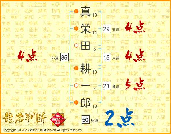 真栄田耕一郎さんの天運は29画の4点!