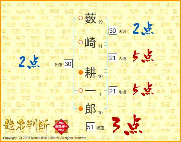 薮崎耕一郎さんの人運は21画の5点!