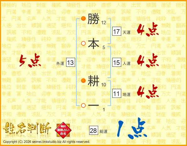 勝本耕一さんの天運は17画の4点!