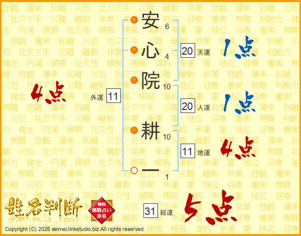 安心院耕一さんの総運は31画の5点!