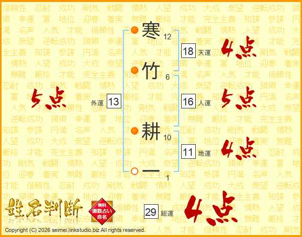 寒竹耕一さんの総運は29画の4点!