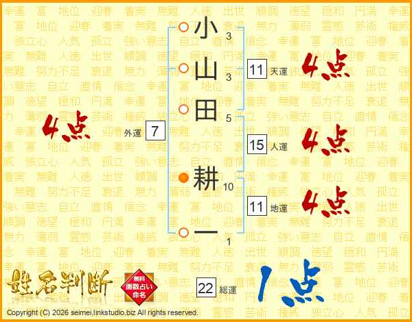 小(3画)山(3画)田(5画) 耕(10画)一(1画)
