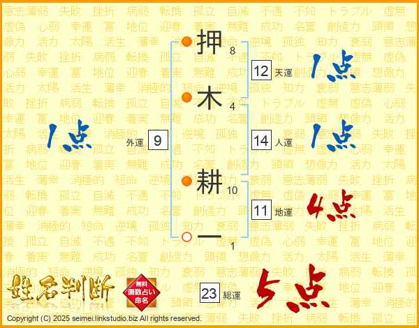 押木耕一さんの総運は23画の5点!